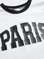 Introducing the Jet Younger Paris T-Shirt, a stylish addition to your little one's wardrobe. This white and black ringer tee is perfect for casual days out or playtime. Made with high-quality materials for comfort and durability. Machine washable for easy care.