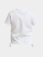 Introducing our Jet Younger Girls White Face Ruched T-shirt! Made from soft cotton, this tee is perfect for everyday wear. Features a unique white face design and ruched detailing for a stylish touch.