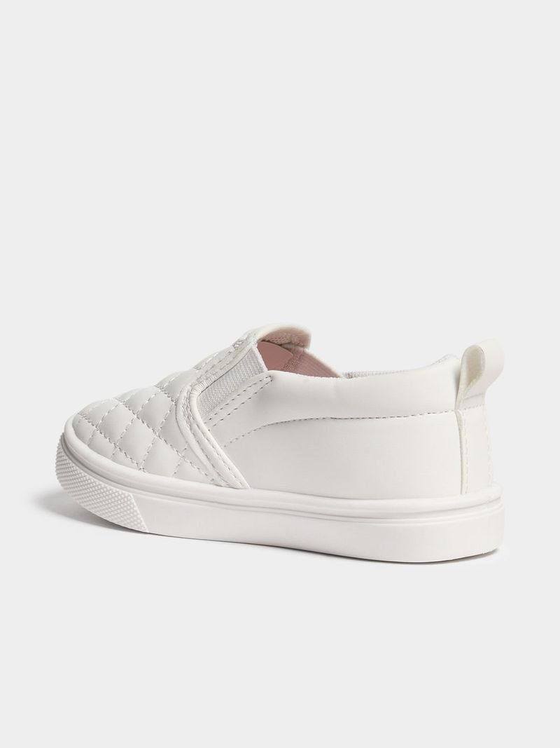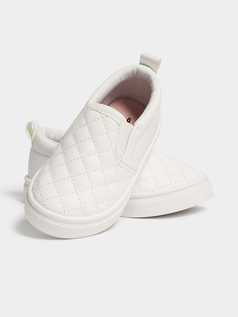 Step up your little one's shoe game with the Jet Younger Girls White Quilted Slip On Sneaker. These trendy sneakers are comfortable, stylish, and easy to slip on and off. Crafted with high-quality PU material, they are perfect for teens aged 8-14 years.