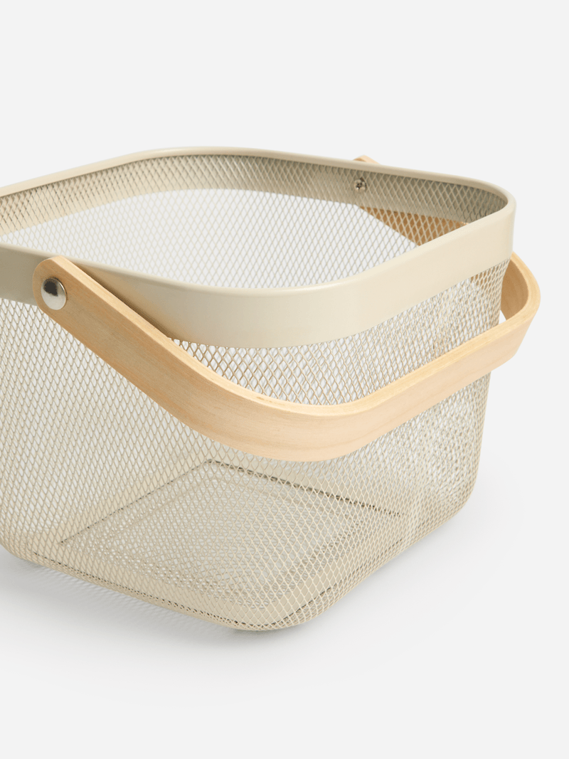 Introducing our stylish Jet Home large cream square storage basket with a convenient handle for easy carrying. Keep your space organized with this versatile storage solution. Made with quality materials, this basket is perfect for any room in your home. Declutter in style!