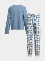 Introducing our cozy blue truck check flannel pyjama set, perfect for a restful night’s sleep. Made with soft polyester, it ensures comfort and warmth.