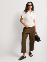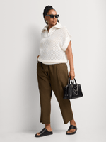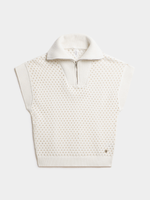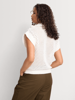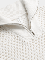 Knit tops are an essential update this season. Wear our 1/4 Zip Openwork Johnny Collar Knit Top with wide leg pants, midi skirts or on-trend Bermuda shorts.