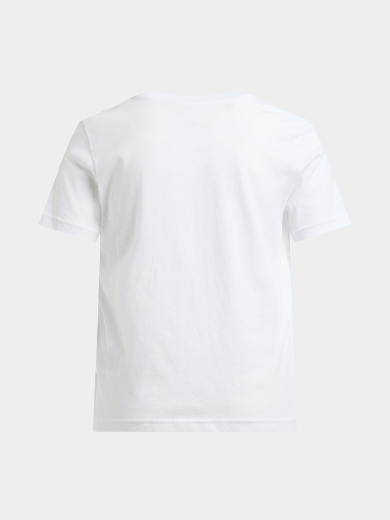 The Jordan Youth White T-Shirt is a stylish essential made from a comfortable cotton-polyester blend. Perfect for everyday wear, this tee is a versatile addition to any wardrobe. Its classic design and quality material make it a must-have for young trendsetters.