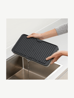 Joseph Joseph brings innovative ideas to the kitchen. Simply place on a flat surface and pull each end to expand. Each tier features a wide platform for a variety of washing up and raised ribs to prevent water being trapped inside cups and glasses. To drain, simply push the tiers together again, lift and pour the excess water away via the handy spout. Its compact size when collapsed means it’s perfect for storing under the sink or inside a cupboard.
