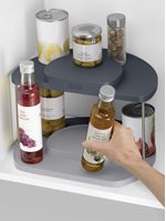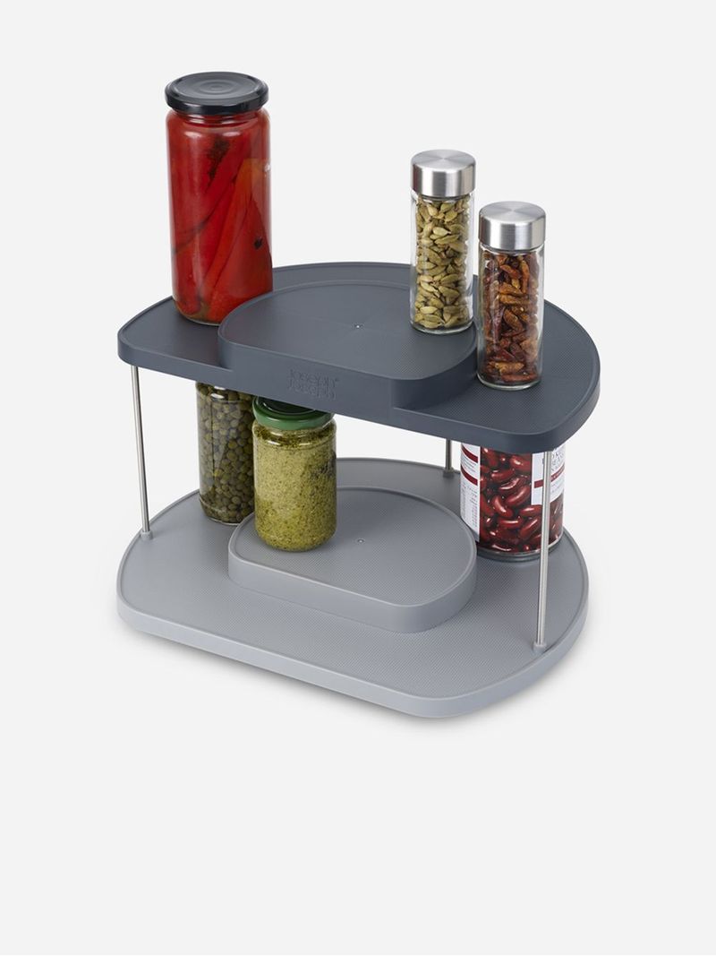 Joseph Joseph brings innovative ideas to the kitchen. Improve visibility and access in cupboards with this simple but effective storage solution. It comprises two, tiered layers on a rotating base, which raises up smaller items that often get lost and makes access from all angles easy. The top layer is also shorter than the bottom one allowing tall bottles or jars to be stored at the front. Each layer has a textured surface and raised edges to stop items sliding off. The unit comes flat-packed but is easy to assemble using the instructions included.