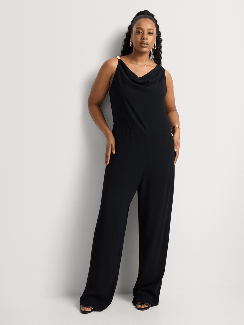 A chic jumpsuit is a stylish alternative to a dress for a special occasion or event. Wear our chic Hardware Detail Jumpsuit with a beautifully draped cowl neck, with strappy stilettos and an embellished clutch bag.