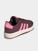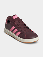Inspire little champions with the kids' adidas Grand Court Lifestyle Tennis Shoes — a classic court-style sneaker made for everyday adventures. Featuring a sleek design inspired by iconic '70s tennis fashion, these shoes combine timeless looks with modern comfort. The flexible rubber cupsole provides durable traction and smooth, confident steps, while the upper is made with at least 50% recycled materials, helping reduce environmental impact. Perfect for school, play, or casual outings, these lace-up sneakers offer sustainable style that keeps up with active kids.