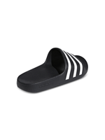 The shower-ready Junior Grade School adidas Adilette Aqua Black/White Slide have a one-piece moulded upper with 3-Stripes across the top. A soft, cloud-like footbed is made with quick-dry cushioning for easy comfort.