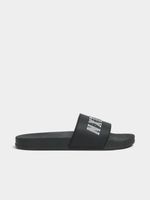 Introducing the Kids Slide Black/Grey PVC Sandals! These next-generation sandals are perfect for all-day play. Made with durable PVC material, these sandals are not only stylish but also comfortable. Easy to slip on and off, they are designed for active kids. With a sporty look and a cozy fit, these sandals are a must-have for any little adventurer. Get ready for endless fun in these black and grey slide sandals!