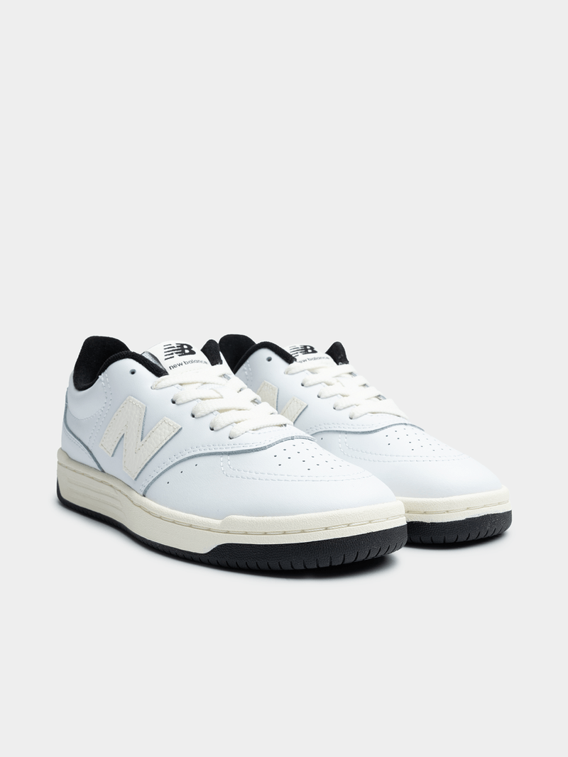 Meet the Junior New Balance GSB80 sneakers in a classic white and black colorway. Built for comfort with PU fabric, these kicks are perfect for everyday wear. Enjoy the standard staff discount and rewards on offer. Stay true to style with these returnable, non-furniture, non-jewelry shoes. Join the #NewBalance family today.