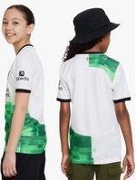 Our designers reached into the archives to design the Liverpool FC 2023/24 Away jersey, pulling inspiration from a color-blocked kit first released in ’95. Digitized green graphics add a modern look while hidden details pays tribute to the 97 people who tragically died in the Hillsborough Disaster. Our Stadium collection pairs replica design details with sweat-wicking technology to give you a game-ready look inspired by your favorite team.