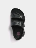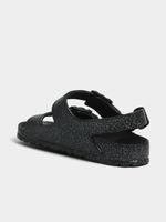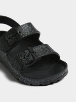 Introducing the TS Girls Glitter Slides! These sparkling sandals are perfect for all-day play. Made with durable PVC material, these sandals are not only stylish but also comfortable. Easy to slip on and off, they are designed for active kids. With a cozy fit, these sandals are a must-have for any little adventurer. Get ready for endless fun in these sandals!