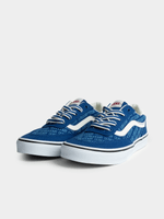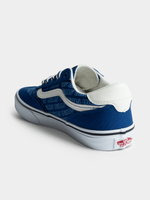 The Junior Vans Brooklyn LS Blue/White Sneaker features a durable canvas fabric, making it a versatile and stylish choice. This sneaker is non-kid-friendly and non-furniture, with a comfortable fit and a fashionable design. Perfect for those looking for a reliable and trendy shoe option that is easy to return if needed.