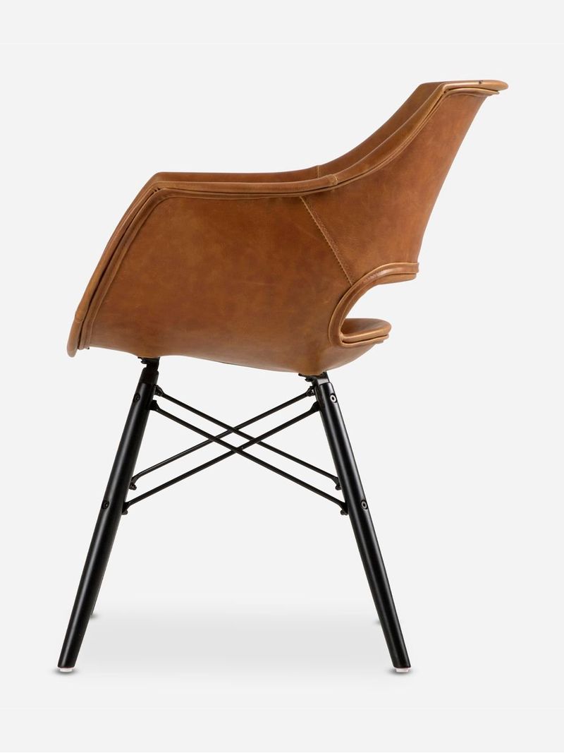 Dine in style with the Kairo Dining Chair. The mid-century modern design features a comfortable bowl-like seat, upholstered in soft, leather-like fabric. Tapered beechwood legs with metal crossbar detail complete the look. A classic choice for a modern home with subtle vintage influences, the Kairo creates an inviting dining space for guests to relax and unwind.