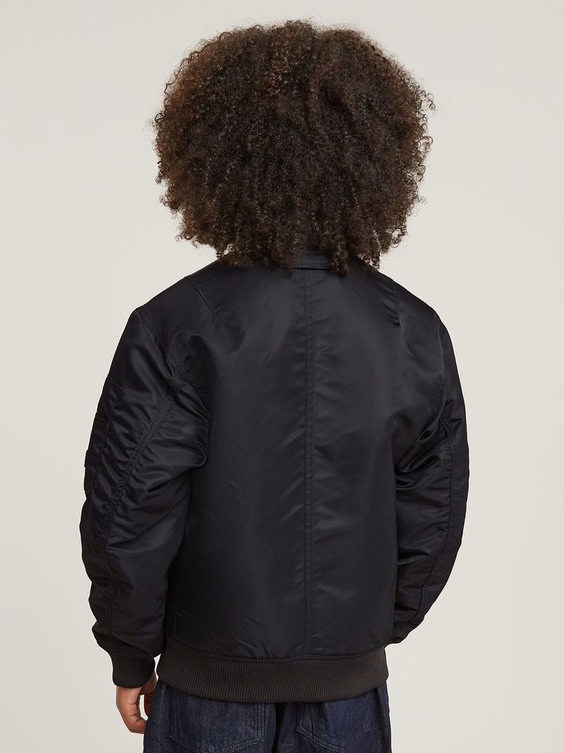 The G-Star RAW bomber for kids offers a mesh lining and lightly padded sleeves. The raised neckline and ribbed finishing add an authentic feel. Aside flap pockets at the waist, this bomber jacket also offers a zip pocket with multiple compartments at the sleeve. An inner pocket is added for ease.