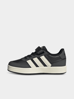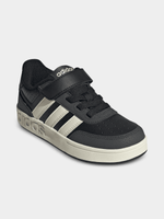 The Breakbase Shoes Kids are low-top sneakers perfect for children who want to make a statement. Featuring a smooth synthetic upper and a durable rubber outsole, these stylish shoes are built for any adventure. The added hook-and-loop strap ensures quick and easy securing once they're slipped on.