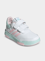 Spinning, striding, leaping or sprinting, kids are constantly testing their shoes. Built with a sturdy, non-marking rubber outsole, these Junior Pre-School adidas Tensaur Sport White Shoes grip the ground while leaving floors exactly how they found them. The two hook-and-loop straps on each shoe are easy to fasten when they're on the go.