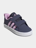 Introducing the adidas VS Pace 2.0 Navy/Pink Sneaker! This stylish shoe is crafted with high-quality fabric and PU material for comfort and durability. It's perfect for kids who love to stay active. Plus, it's returnable and eligible for rewards. Get your little one a pair today!