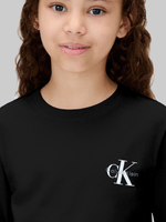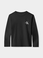 Calvin Klein Kids Black Chest Monologo T-Shirt is a trendy choice with iconic logos and quality cotton material. Crafted with care, it features a crew neck and regular fit. Effortlessly stylish and comfortable, it's a must-have for your little one's wardrobe.
