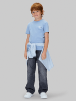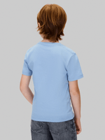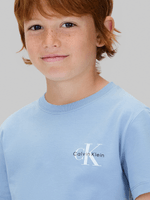 Calvin Klein Blue Chest Monologo T-Shirt for kids is a premium brand made of 100% cotton fabric from India. With cool wash and iron instructions, it's a comfortable and stylish choice that's easy to take care of. Perfect for any young trendsetter.