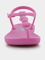 Lilac Rope look T-Bar sandals by Ipanema! These gorgeous flip-flops are adorned with three spheres linked together . Crafted entirely from recyclable materials and completely vegan-friendly, they're a guilt-free choice for your child's wardrobe. With Ipanema's commitment to zero waste, every glittery step contributes to sustainability. Whether it's a day at the beach or a playdate, these flip-flops add a touch of eco-friendly glam to any outfit.
