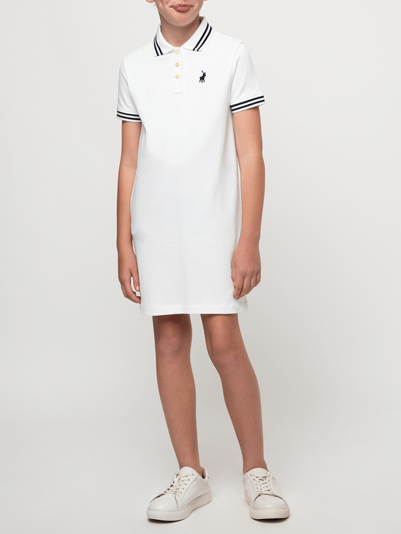 Crafted from premium 100% cotton pique, this girls' golfer dress offers a relaxed fit with a classic collar and short sleeves, perfect for effortless style and comfort.