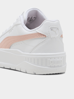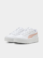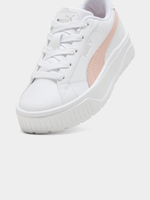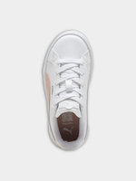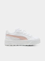 The Kids’ Puma Karmen II in White/Rose Quartz is a fresh, stylish platform sneaker that brings a boost of confidence and contemporary flair to the playground. Featuring a clean, durable synthetic leather upper in brilliant white, this model is beautifully accented by "Rose Quartz"—a soft, pearlescent pink—on the iconic Formstrip and branding. The standout feature is the chunky, modern platform midsole, which provides a trendy "street-style" lift without compromising stability. Equipped with the signature SoftFoam+ sockliner, these sneakers offer plush, all-day cushioning, ensuring your child stays comfortable whether they are in the classroom or out with friends.