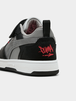Step up their sneaker game with the Kids Puma Rebound V6 Lo Black/Grey Sneaker. Made from durable PU fabric, these shoes are perfect for everyday wear. Featuring a retro 90s design in black, grey, and red, these sneakers are sure to be a hit with any little fashionista. Keep them comfy and stylish all day long.