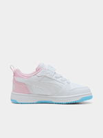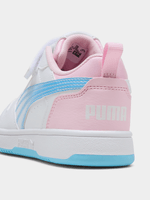 Playful Style & Heavenly Comfort: Brighten up their stride with the Puma Rebound V6 Lo Jelly, a vibrant and imaginative take on the classic basketball silhouette. Featuring the "Heaven" colorway—a dreamy mix of crisp white, sky blue, and soft pink—these sneakers add a whimsical touch to a high-performance design. It’s the perfect blend of retro hoops DNA and playful, kid-friendly aesthetics.