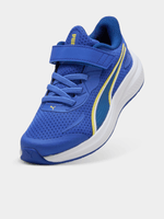 The Kids’ Puma Skyrocket 2 AC in Blue/White is engineered for high-energy play and effortless style. Designed with a breathable textile upper to keep young feet cool, these sneakers feature a sleek, athletic silhouette anchored by the iconic Puma Formstrip. The SoftFoam+ sockliner ensures plush, all-day cushioning, while the convenient hook-and-loop strap combined with elastic laces allows for a secure, "no-fuss" fit, perfect for kids on the move. Finished with a durable, non-marking rubber outsole for superior traction, the Skyrocket 2 is the go-to choice for school sports, playground sprints, and everything in between.