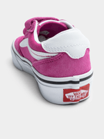 The Kids Vans Brooklyn LS sneaker in pink and white is a must-have for little feet. Made with durable canvas fabric for comfort and style. Perfect for playdates or everyday adventures. Keep your little one's feet looking cool and feeling comfy all day long.