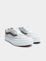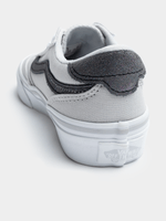Add a touch of sparkle to your child's wardrobe with the Kids Vans Brooklyn Shimmer in a sleek Grey and White colorway. These sneakers update a classic skate-inspired silhouette with a shimmering grey upper that catches the light, offering a playful yet sophisticated look for everyday wear. Featuring the signature bold, chunky laces and a crisp white rubber outsole, they provide a secure fit and reliable traction for all-day adventures. Whether they’re heading to school or the playground, these shimmering sneakers blend durability with a modern, eye-catching style that is sure to make them stand out.