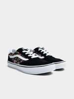 Introducing the Kids Vans Filmore Check Floral Black Sneaker. Made from durable canvas fabric, these sneakers feature a stylish floral design that will elevate any outfit. Lightweight and comfortable, they are perfect for everyday wear. Upgrade your shoe collection with these trendy kicks.