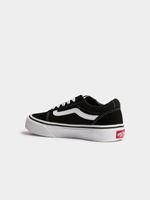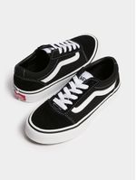 Inspired by the classic Vans skate shoe, features a low profile silhouette with sturdy canvas and suede uppers, hook-and-loop closures, padded collars for support and flexibility, and signature rubber waffle outsoles