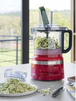 Every kitchen deserves a KitchenAid. This 1.7litre food processor has a reduced footprint, smooth finishes, a twist-free design, one-click bowl assembly and latched lid for easy set-up, usage and cleanability. That's fresh prep with precision every day. The Illuminated LED-controls with 3 easy-press speed paddle options means it can handle a variety of ingredients. Includes multi-use accessories such as multi-purpose and dough blades, reversible medium slicing/shredding and thick slicking only discs to help you chop, knead, mix, shred and slice with simplicity.