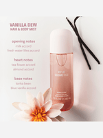Creamy, milky, airy. Indulge in the silky softness of my Vanilla Dew Hair & Body Mist— a milky, floral gourmand fragrance with an elevated, modern take on vanilla.