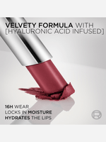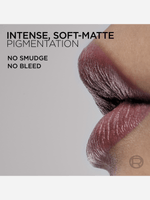 This isn't just matte, This is Volume Matte, Bold pigment meets a plush, powdery finish for a smoothed and plumped look.