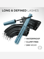 Introducing the L'Oreal Paris Telescopic Lift Mascara, Black, now in Waterproof. For up to +4.7mm longer looking lashes and up to 36hour lifted and volumised lashes. Resists water and sweat. Smudge and flakeproof.