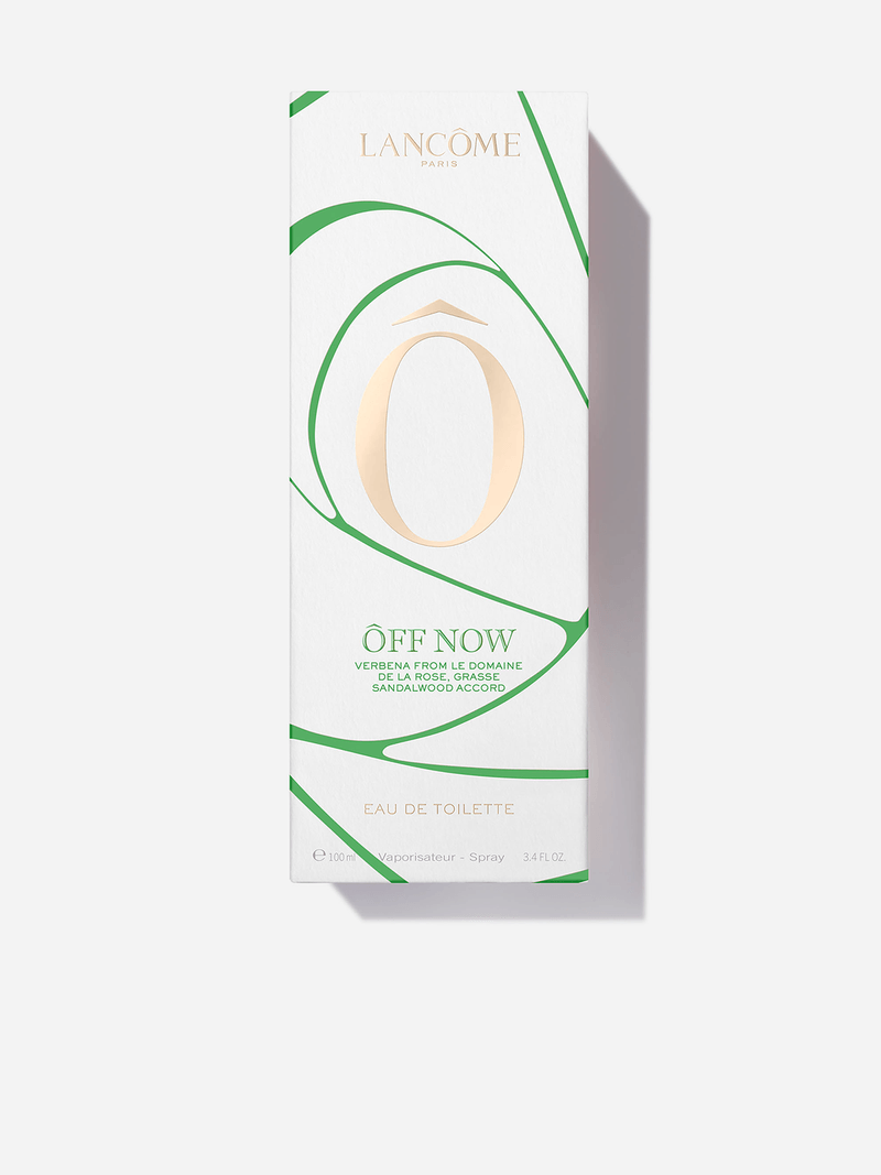 Powered by Lancôme expertise, ÔFF NOW brings the calm and harmony of a quiet, lazy summer afternoon... With a green and spicy freshly cut Verbena from Le Domaine de la Rose in Grasse, and a creamy sandalwood accord, this fragrance will help you feel disconnected, giving your mind a well-deserved day ôff.