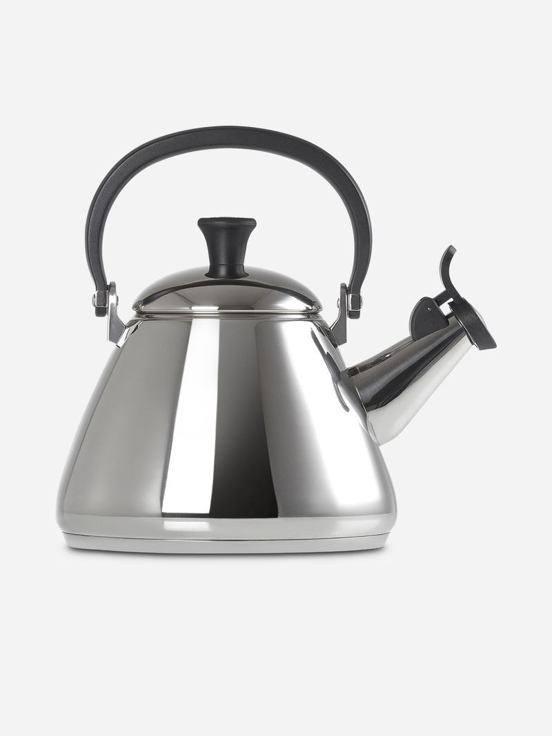 Elevate your everyday ritual with this stylish Le Creuset Kone Stove Top Kettle in Stainless Steel. Crafted from stainless steel, it brings a chic, modern feel to your kitchen. The wide base makes for a quick boil, alerted by the wonderfully old-fashioned whistle.