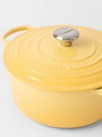 The Le Creuset Signature Round Cocotte is an ultra-versatile piece of cookware that can be used for just about every cooking technique, including slow cooking, simmering, braising and searing. Its classic, rounded shape perfectly matches the burner size or plate, exposing ingredients to a consistent heat source. Designed for slowly simmering soups and stew, it is even versatile enough to be used for baking. This durable cast iron pot heats up fast, then locks in heat and flavour with its tight-fitting lid, continuously basting ingredients as they slow cook.