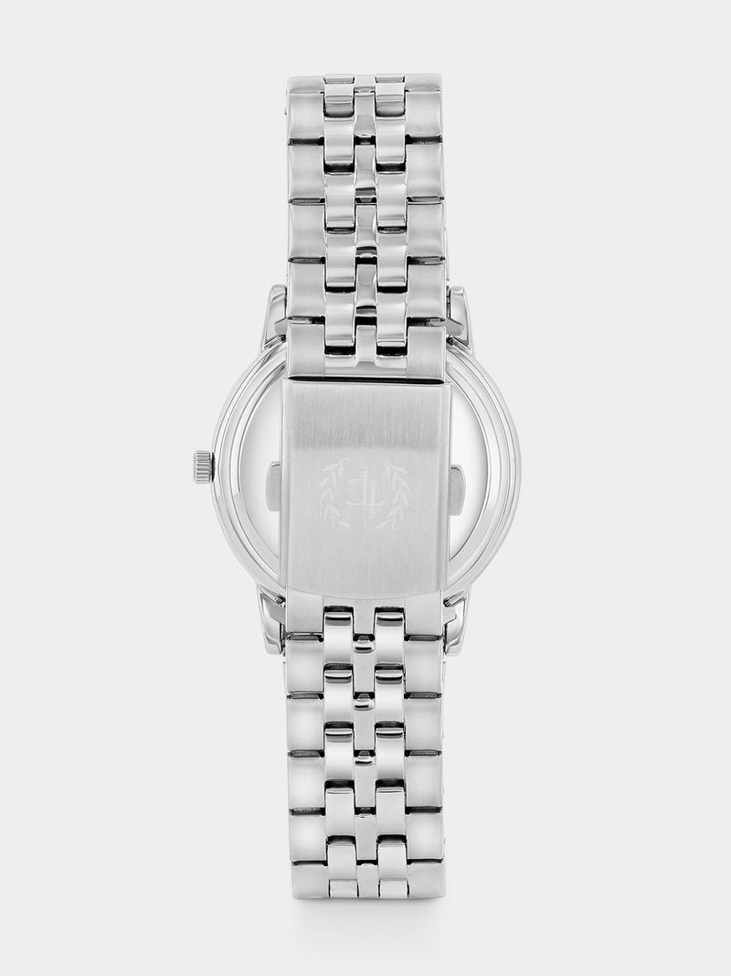 This stylish fully Stainless Steel bracelet watch features a Silver Plated round case, black multifunction dial with Japanese Quartz movement and a domed mineral glass. Special features include a calendar function, 30 metre water resistance and a 5-year guarantee.