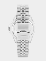 A testament to expert design and craftsmanship, this stylish watch features a round case with a Navy and Red Plated top ring, sleek navy dial with a date window and Stainless Steel bracelet strap. Special features include 5 ATM water resistance. It boasts Japanese quartz movement protected by a 5-year guarantee.