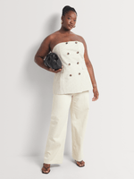 The Linen Blend Stripe Bustier is a bold statement piece for your smart wardrobe. Dress up denim with this suiting-inspired top, or pair it with a smart mini skirt and heels.