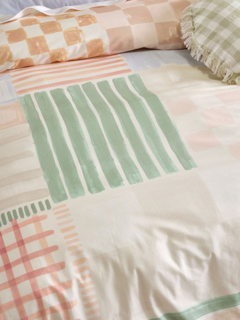 A hand-painted beauty, the Linen House Kids Casa Duvet Cover Set offers a new take on the much-adored patchwork style. Its combination of stripes and checks in soft pastel shades is printed on cotton percale, and looks best paired with coordinating cushions and throws.
