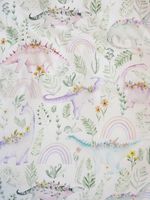 The Linen House Kids Dino Garden Duvet Cover Set is perfect for your little palaeontologist. Dino Garden features charming pastel dinosaurs dressed in blossoms, roaming through lush ferns and vibrant rainbows. Printed on 100% cotton, this design reverses to sweet rainbows