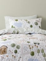 The Linen House Kids On The Farm Duvet Cover Set brings a fantastical farmyard scene right to their bedroom, featuring a joyful scene of fluffy sheep, chirping chickens, oinking piglets and more. Printed on 100% cotton, this design reverses to a classic sage gingham.