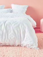 The Linen House Nancy Duvet Cover Set in White brings elegance and sophistication to your bedroom. A beautiful boucle jacquard weave design, finished with delicate fringing adds a touch of luxury to your sleep space. The striking pattern is a classic design that never goes out of style, and the boucle weave gives it a unique texture that adds depth and visual interest.