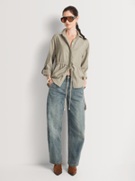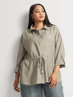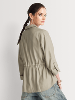 Effortlessly stylish, our Long Sleeve Drawstring Utility Shirt is the perfect choice for laid-back style. Wear it with wide-leg pants and flat sandals, then complete the look with on-trend sunnies and a monogram shopper bag.
