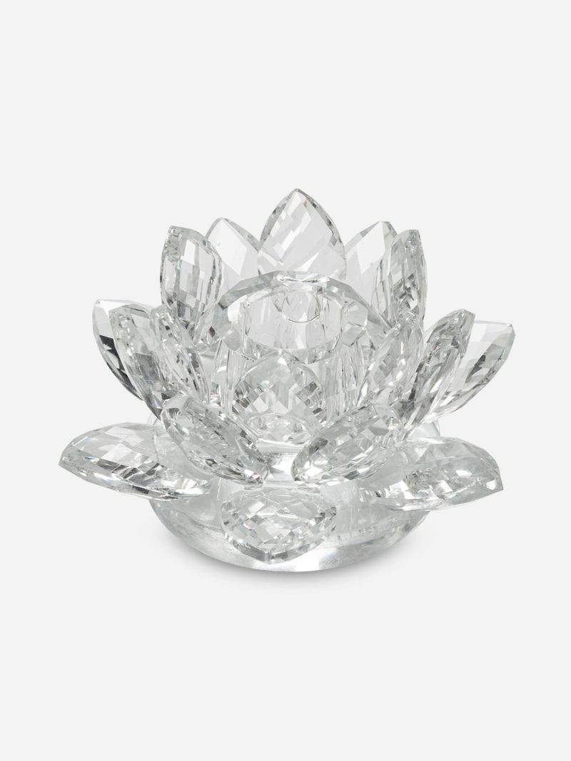 Our Lotus Dinner Candle Holder brings a feminine feel to your table setting with its facetted glass floral design. Enjoy beautifully refracted light that delicately lights the room. Combine it with the votive candle holder for a tiered tablescape.